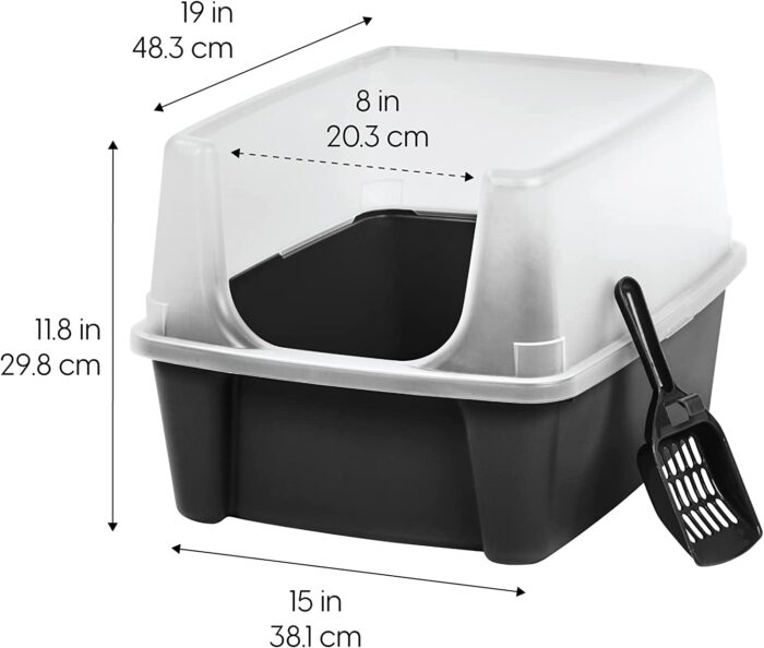 - GREAT SIZE – Dimensions: 19″L x 15″W x 11.75″H. Open top IRIS Cat Litter Box is designed to offer cats plenty of room and quick accessibility