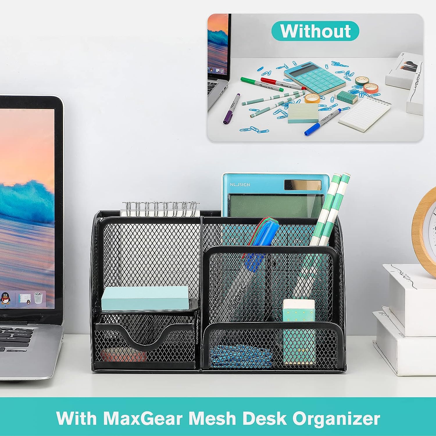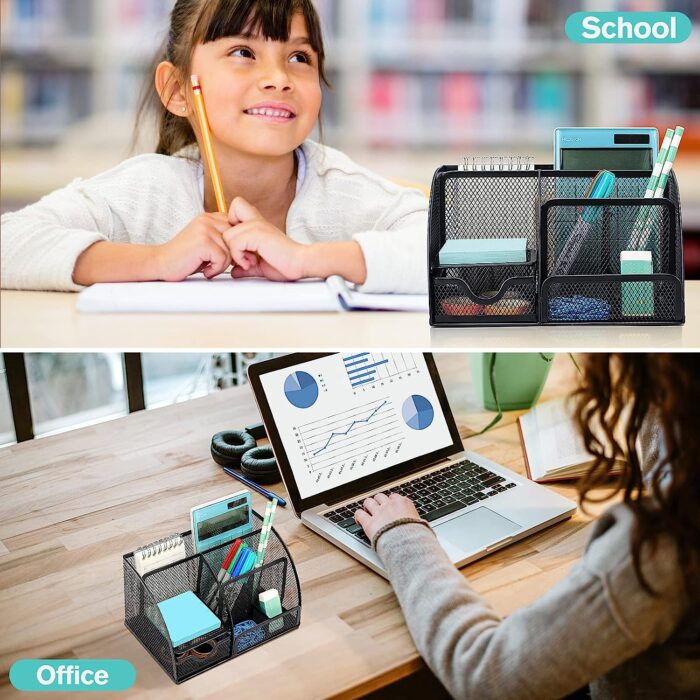 - Durable Material: The desk organizer is made of sturdy mesh metal, it has solid metal base. The smooth ABS coating and rounded edges make it attractive.