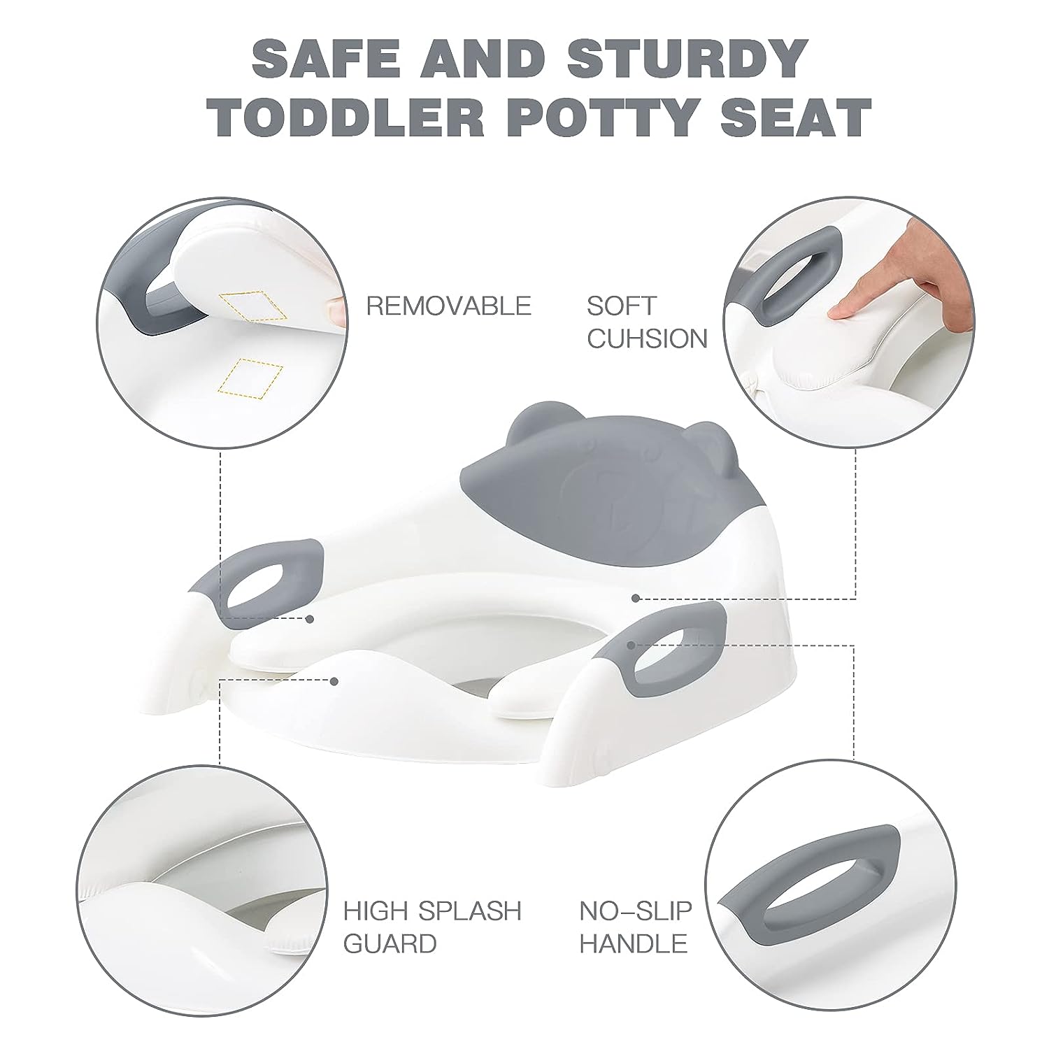 • SAFE AND DURABLE: This potty seat is safe to use with our anti-slip design for the pads and ladder. It will prevent the seat from shifting, which means your kids can climb up and down to use the toilet independently without worry.